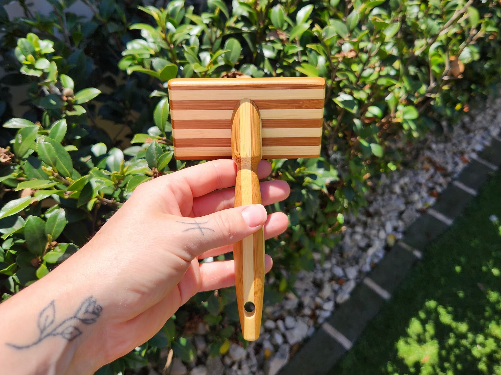 - Comfort Grip: A bamboo and sisal fibre handle provides a sturdy, ergonomic hold for easy grooming sessions.
